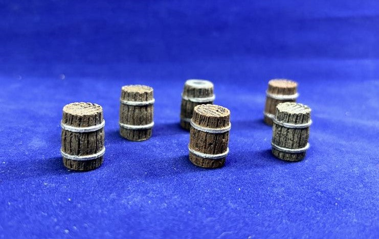 Bring your tabletop scenes to life with this set of 28mm Resin Cast Wooden Barrels! Perfect as scatter terrain, cover, or scenic details, these highly detailed crates add rustic charm to Old West, medieval, or modern rural settings. Cast in durable resin with a natural wood texture, they're ideal for wargames, RPGs, and skirmish battles. Ready to paint and easy to drop into your favorite layout!